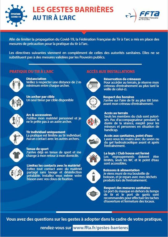 -Respect des mesures sanitaires : port du masque recommandés en dehors du pas de tir en cas de présence de plusieurs archers.